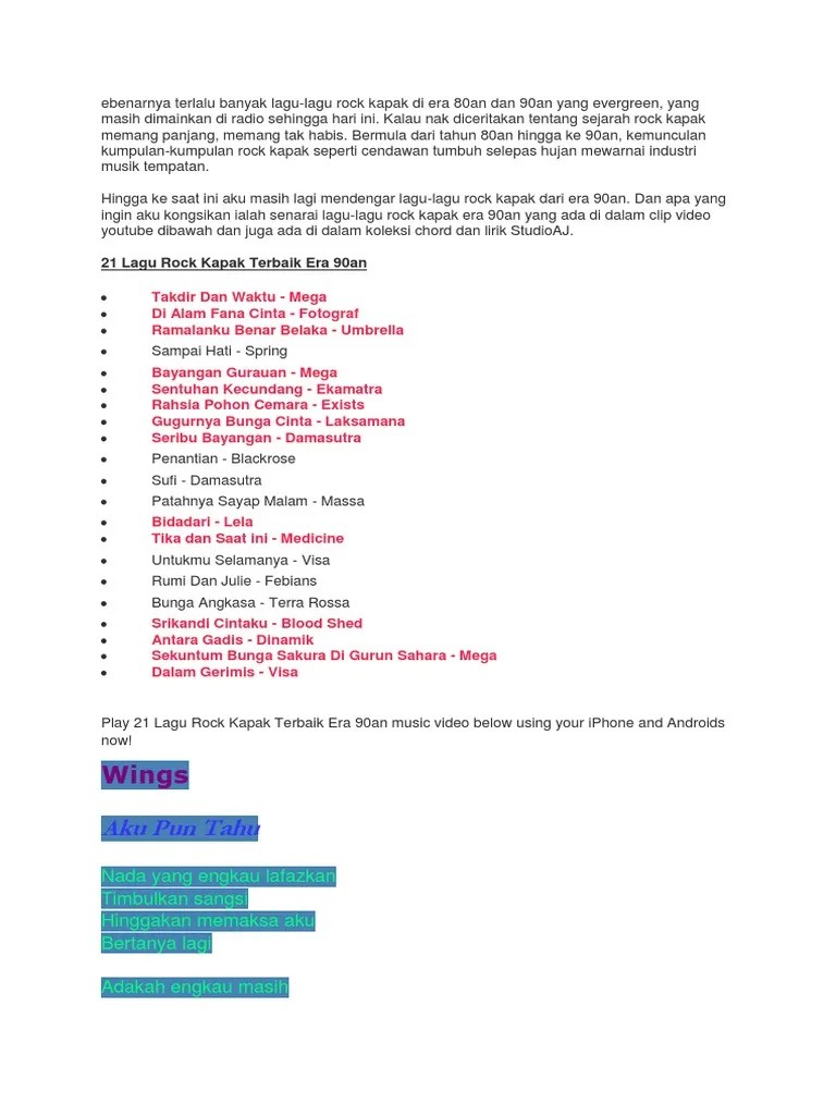 Unduh kumpulan lagu malaysia rock full lirik 90an full album berdurasi sekitar 27:35. Lamunan terhenti lirik aris ariwatan lagu jiwang lelaki 90an. Kami penyokong kental lagu rock asli. 123,395 views jul 11, 2020 ….more.